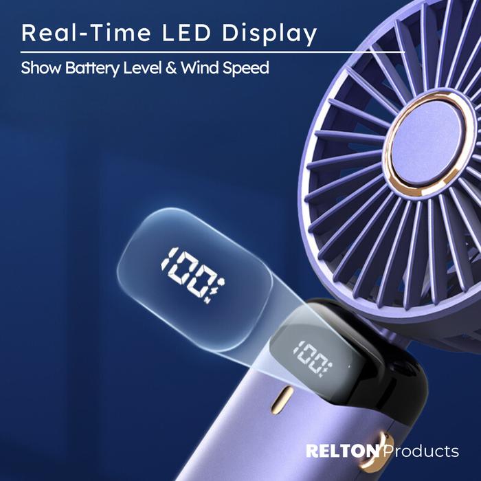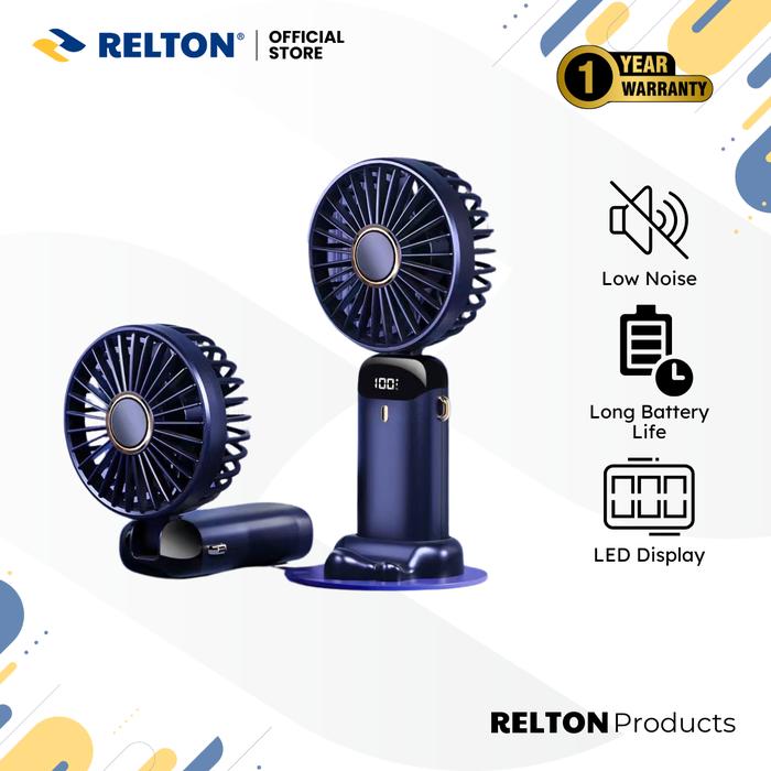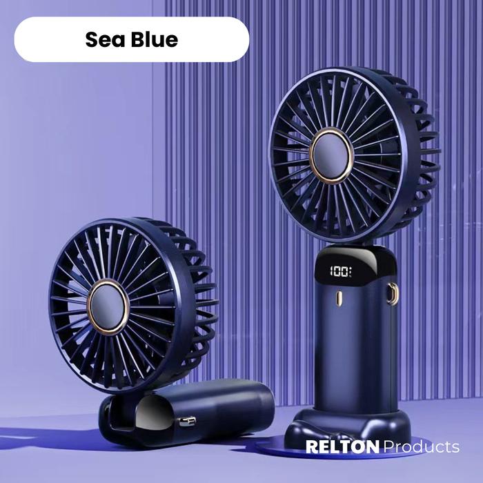 RELTON KIPAS ANGIN PORTABLE MINI LIPAT 1800MAH HANDHELD MINI FAN PORTABLE RECHARGEABLE LED DISPLAY - SEA BLUE