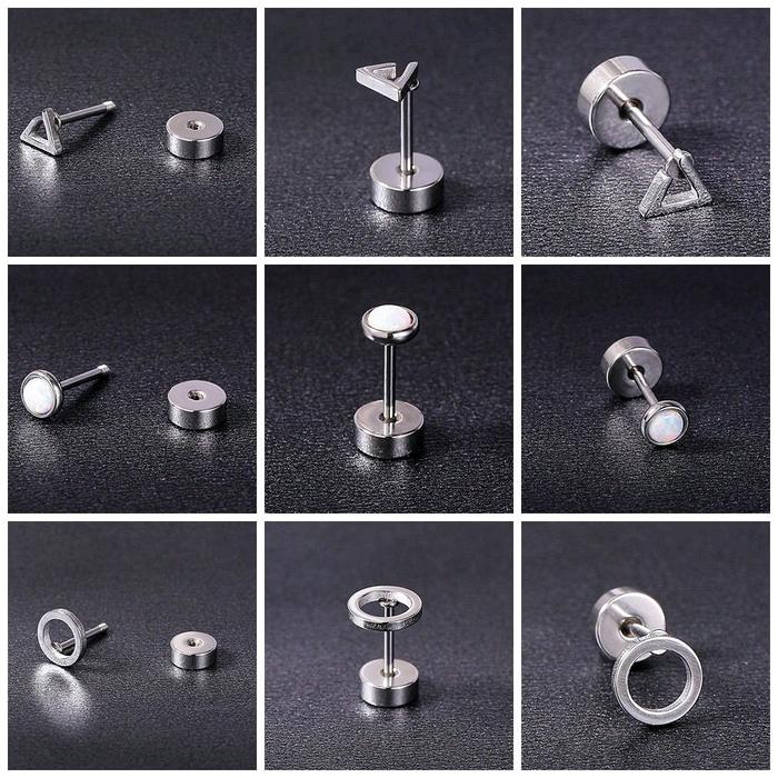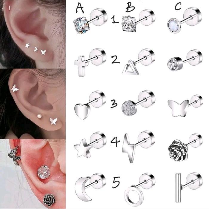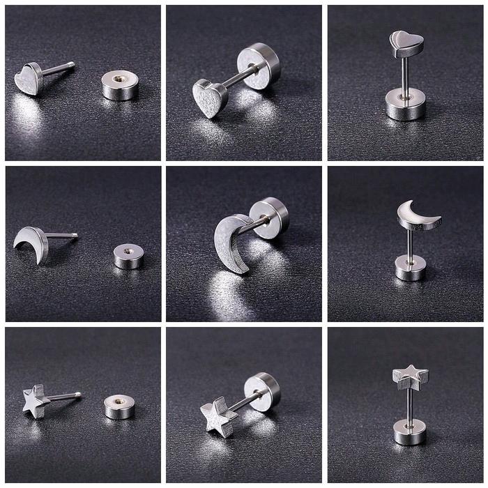 1PCS PIERCING ANTING FLAT EARRING LOBE STANDART HELIX STAINLESS STEEL PEREMPUAN LAKI-LAKI - TIPE.A, #1
