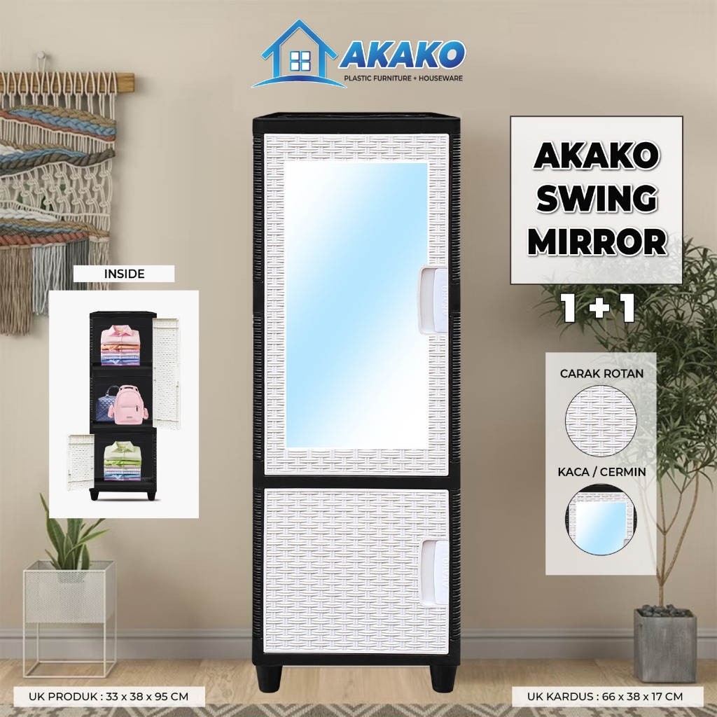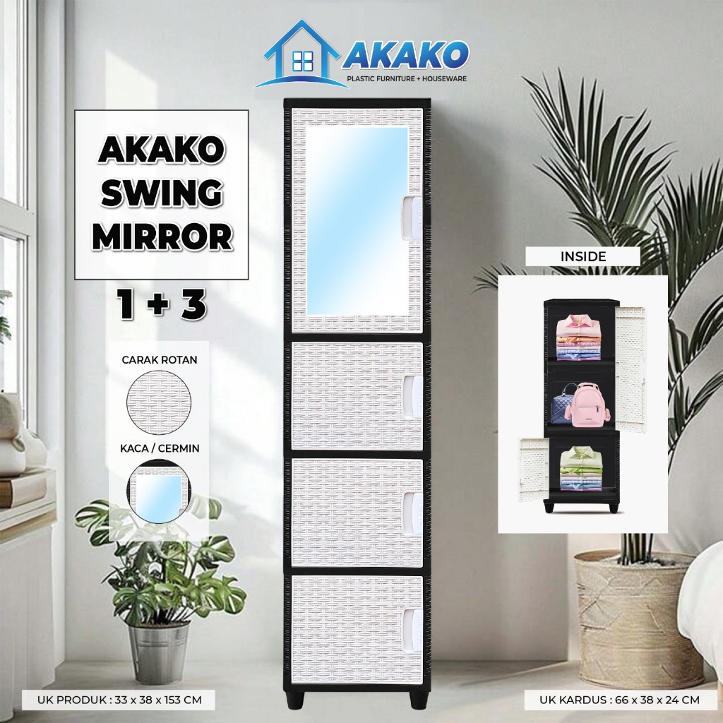 Lemari Plastik Swing Mirror Kaca Cermin Pintu Putih Rotan
