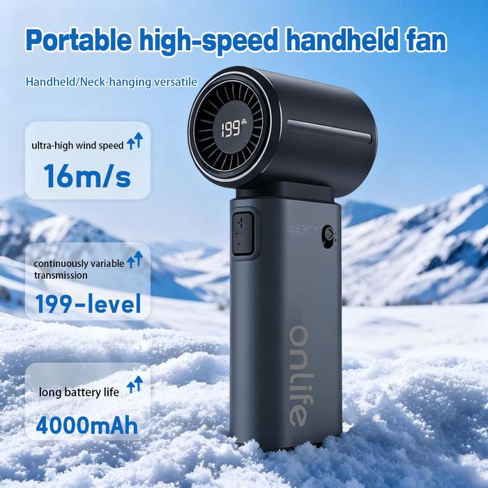 ONLIFE HIGH-SPEED PORTABLE HANDHELD FAN 4000MAH MINI KIPAS STRONG WIND 199 GEAR WIND SPEED KIPAS ANGIN DIGITAL DISPLAY A