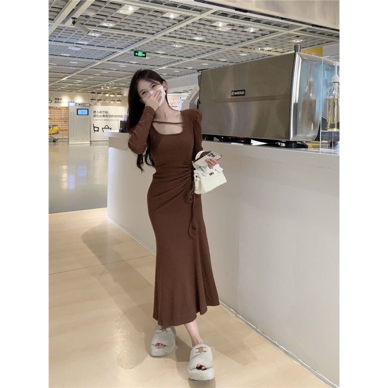 G009-Gaun Wanita Basic Knit Slim Long Sleeve Dress lebaran dress serut samping panjang