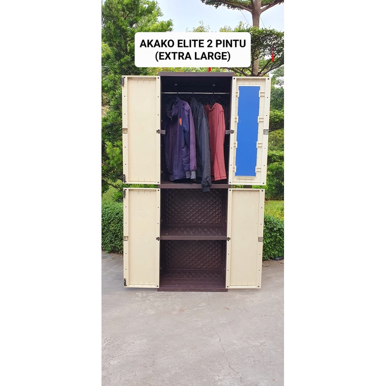 Lemari Elite 2 Pintu Gantung + Rak + Kaca + Kunci Motif Rotan ( New Promo )