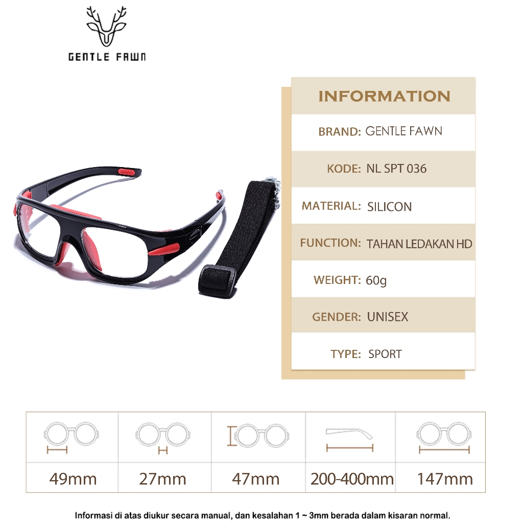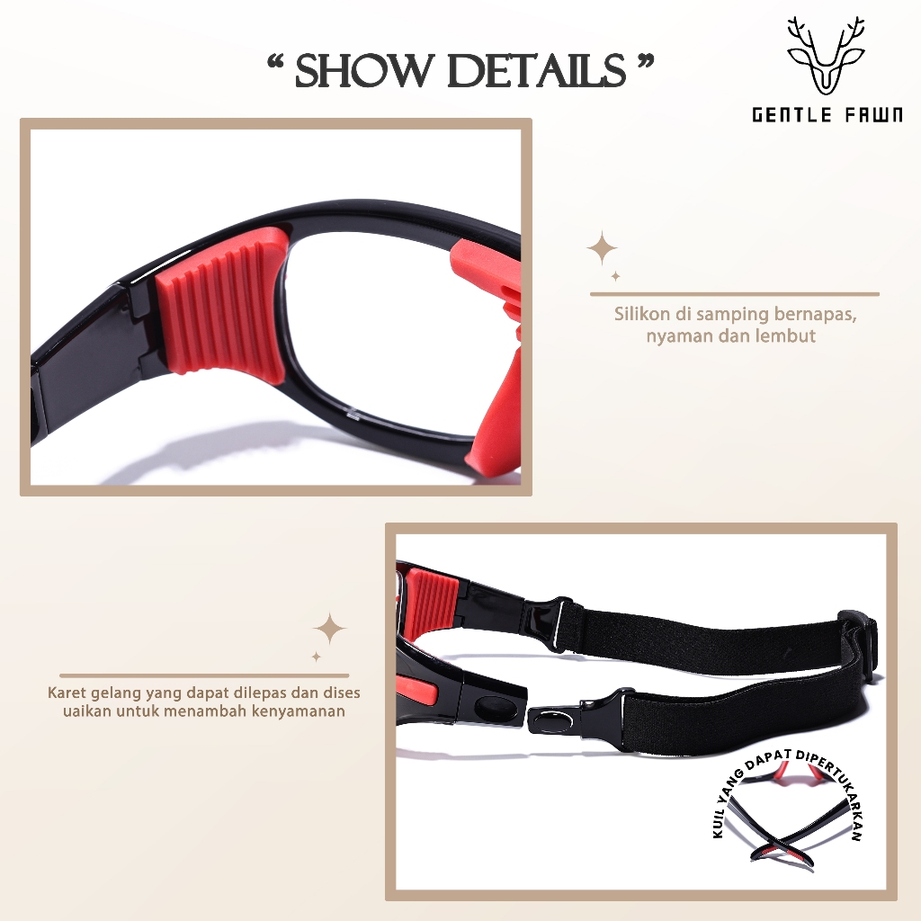 Gentle Fawn Kacamata Olahraga Sport Basket/Voli Lensa Plano Bahan Tr90 Kombinasi Silikon Lentur Kokoh Bisa Minus Pria Wa