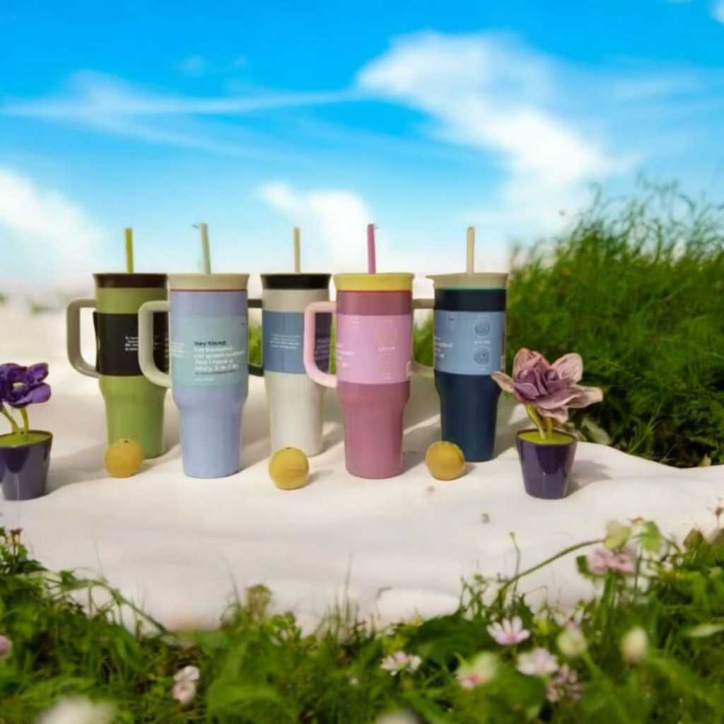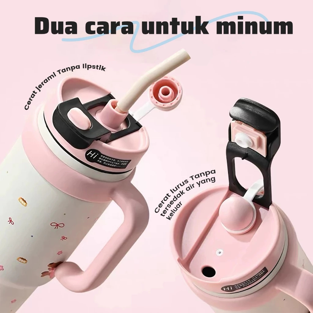 Tumbler Stainless Panas Dingin Thermos Gagang 1000-1200 Ml Straw Tumbler Thermos Stainless