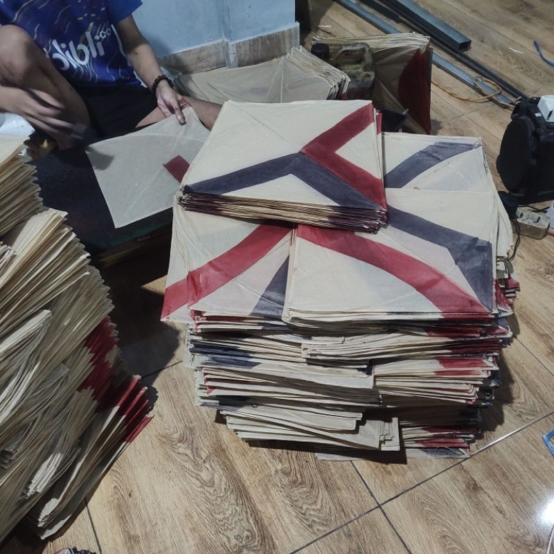 layangan pulas kertas coklat dan putih motif ukuran 54 isi100 pcs