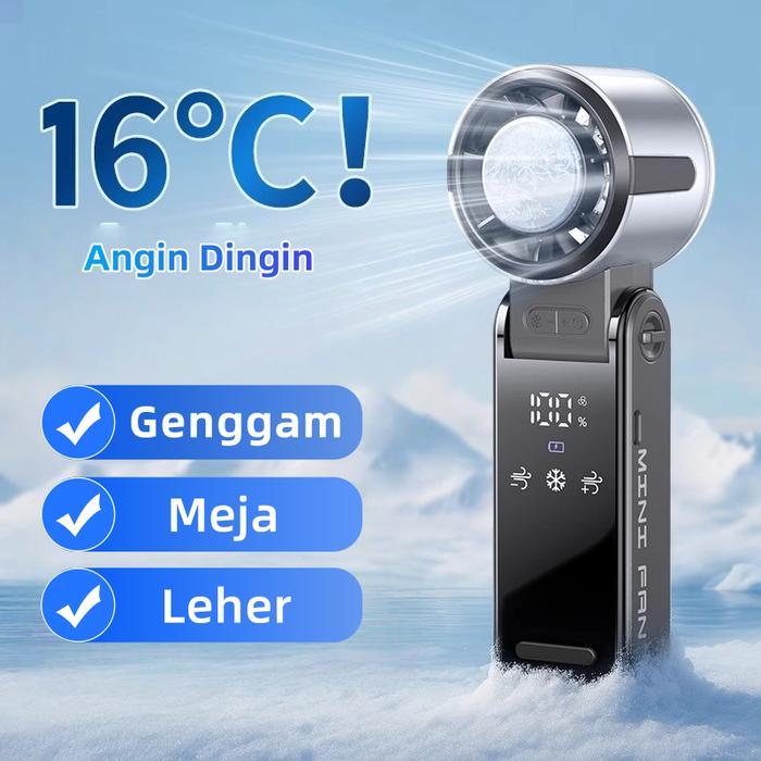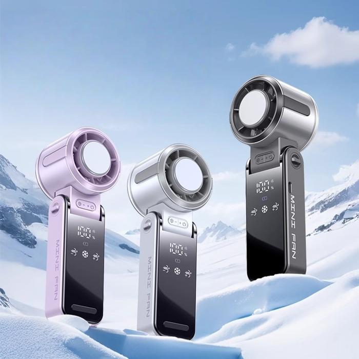KIPAS ANGIN MINI PORTABEL BERKECEPATAN TINGGI TURBO DILENGKAPI LAYAR DIGITAL + KECEPATAN BISA DIATUR - ABU-ABU