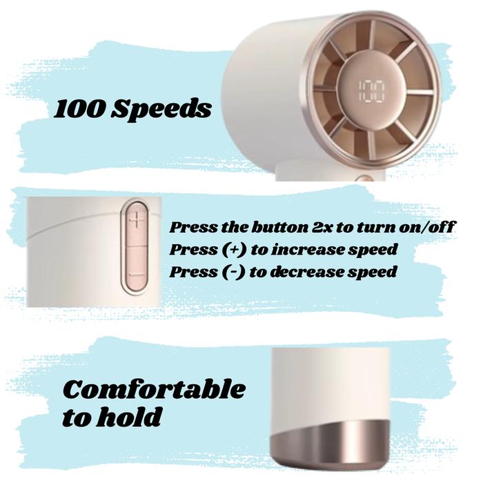 KIPAS MINI STRONG 100 GEAR WIND SPEED / KIPAS ANGIN PORTABEL / DIGITAL DISPLAY WIND - KIPAS WIND CREAM