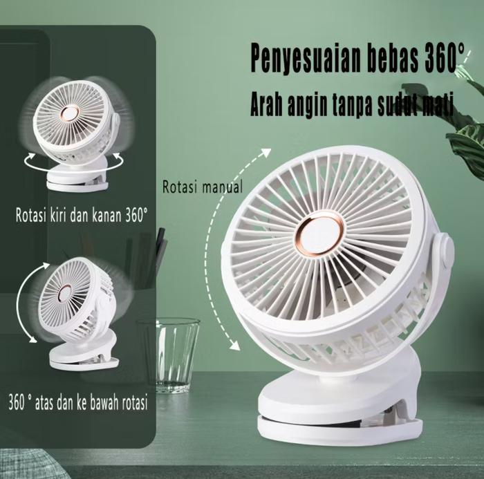 ALLIANCE KIPAS ANGIN USB 15000MAH CLIP MINI FAN ROTATING KIPAS ANGIN MEJA MINI JEPIT PORTABLE LED DISPLAY PORTABLE FAN -