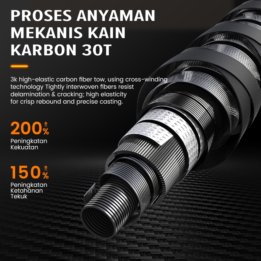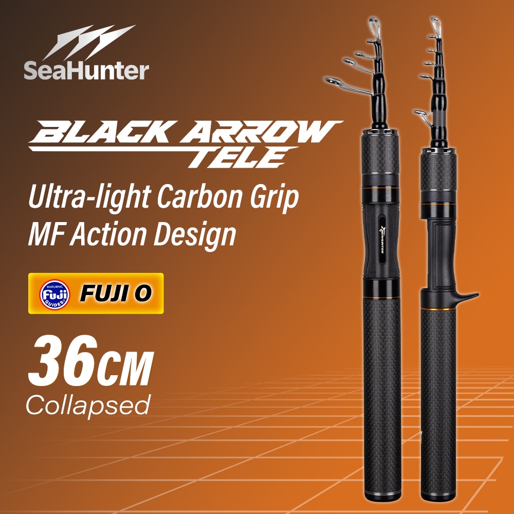 Seahunter Black Arrow Tele Joran Pancing,Fuji O Ring 30T Carbon Cloth Hollow Rod Tip,Action Mf 1.5M/1.68M/1.98M Spinning