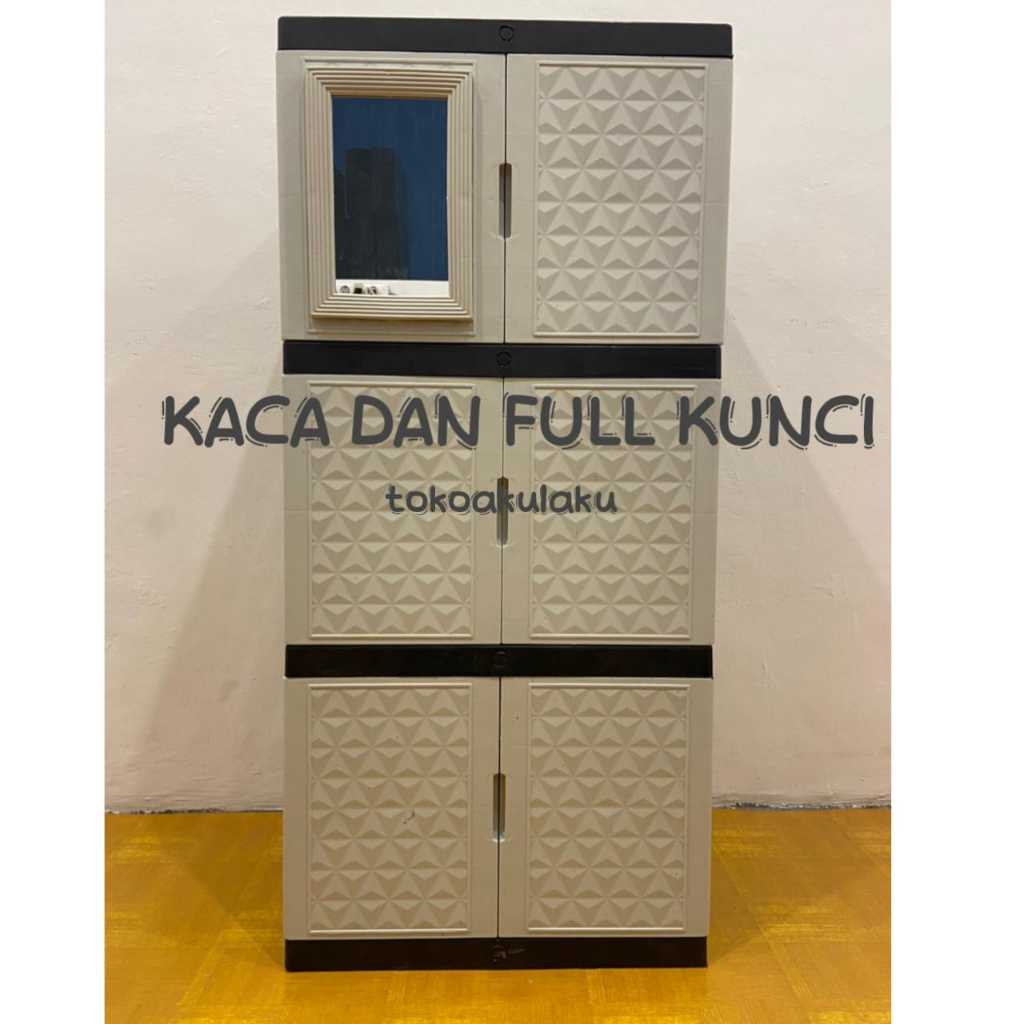 Lemari Plastik Lemari Pakaian Lemari Baju Kaca Putih Full Kunci