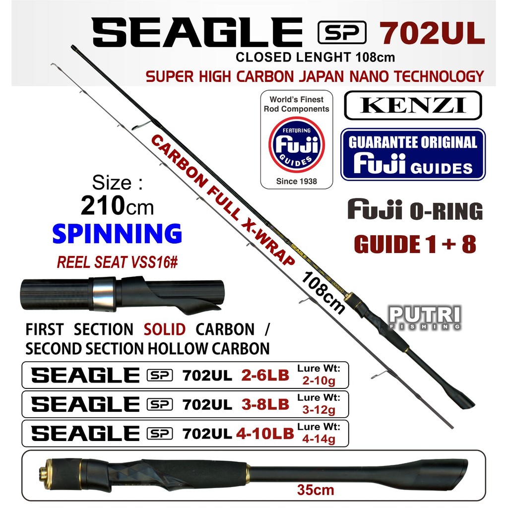 Joran Kenzi Seagle 702 Ultralight Spinning Baitcasting 210Cm Solid Carbon Fuji Guides 2-6Lbs 3-8Lbs 4-10Lbs Stream Rod B