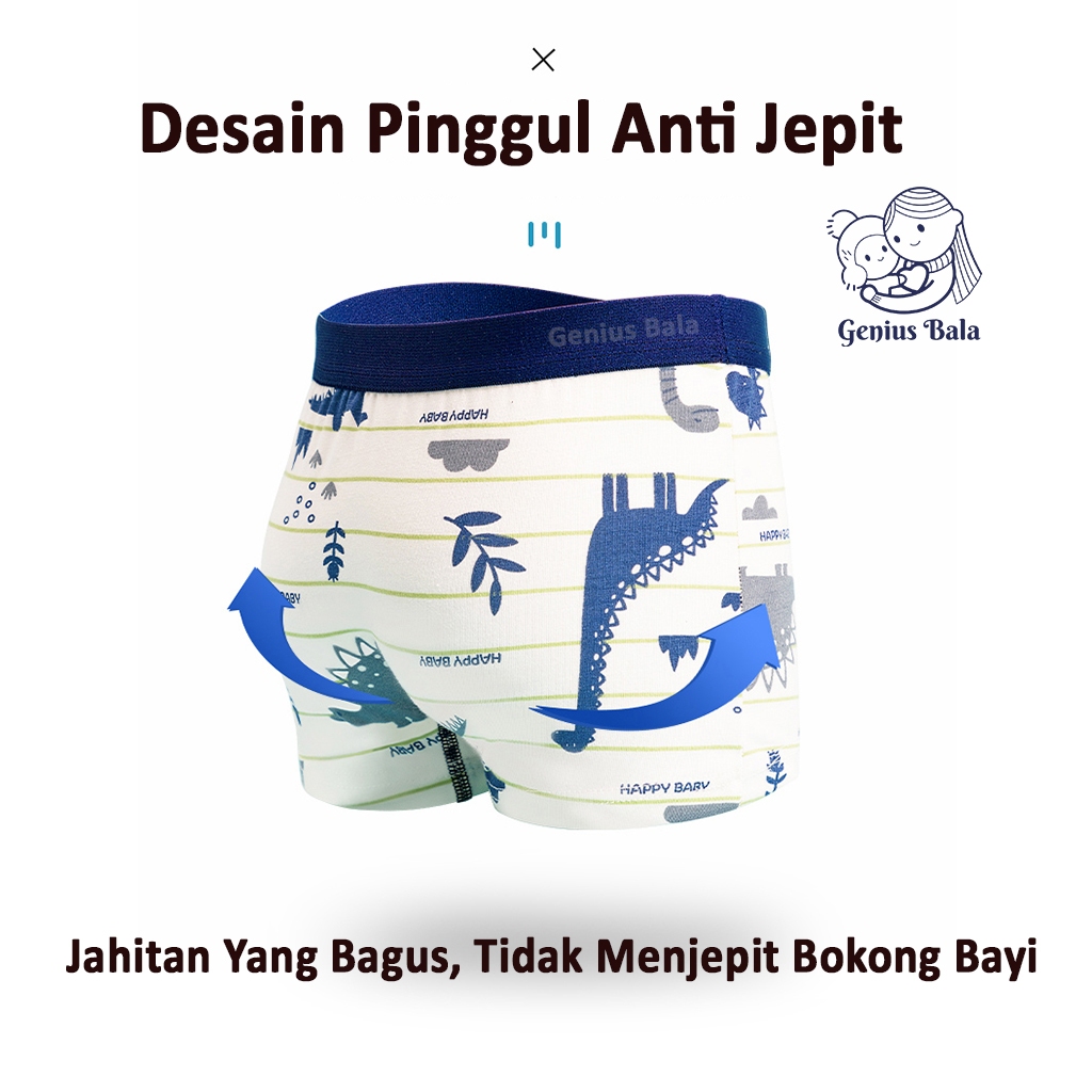 GENIUS BALA (2-10 TAHUN)KATUN MURNI CELANA DALAM BOXER ANAK LAKI-LAKI VERSI FASHION ANAK CD