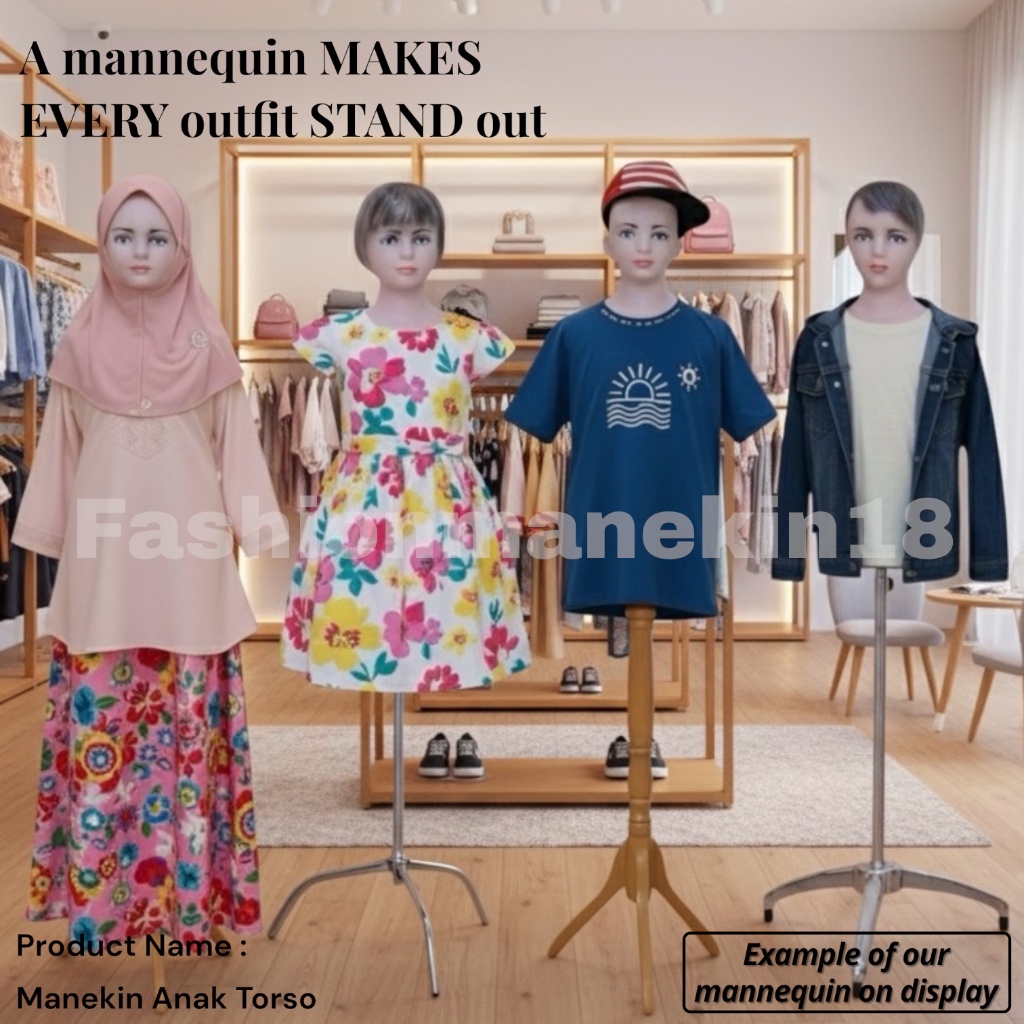 MANEKIN ANAK TORSO SETENGAH BADAN ADA KEPALA + PATUNG BAJU ANAK + DISPLAY BAJU ANAK GAMIS DRESS KAOS