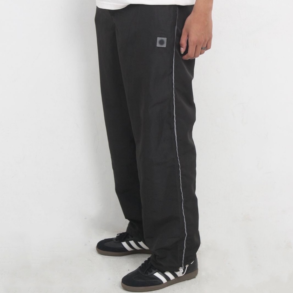 Genuvaly - Trackpants Loose Fit United Series Black Celana Panjang Parasut Taslan Reflektive Rubber Patch