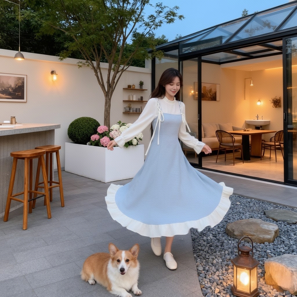 Romantic Lace Ribbon Long Dress Biru Pastel - dress korea dres panjang fadfad dress wanita K061