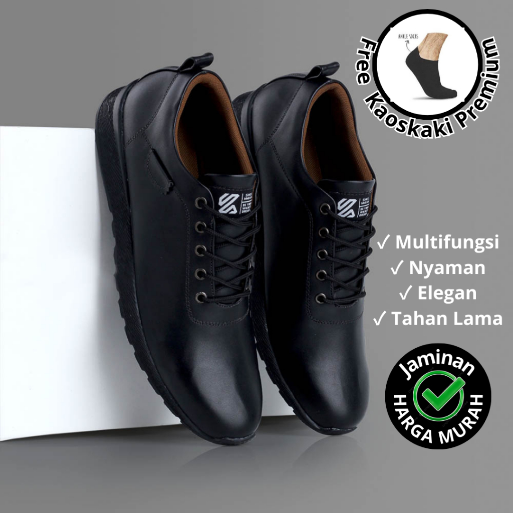 ORIGINAL - Sepatu Kerja Formal Pria Oxford Pantofel Kulit Sintetis Full Black Resmi Kantor Casual