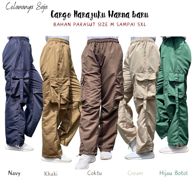 Celana Cargo Harajuku Warna Baru (Celana Saja) 5Warna Bahan Parasut Unisex (Pembelian Khusus Hanya Celana Cargo Saja)