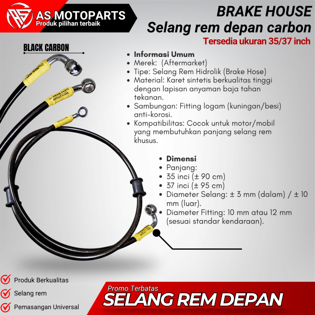 Selang Rem Depan 35 Inch 90Cm Selang Rem Vario Beat Vario Pcx Adv Mio Cbr Ninja Kabel Selang Rem