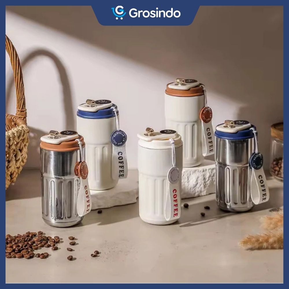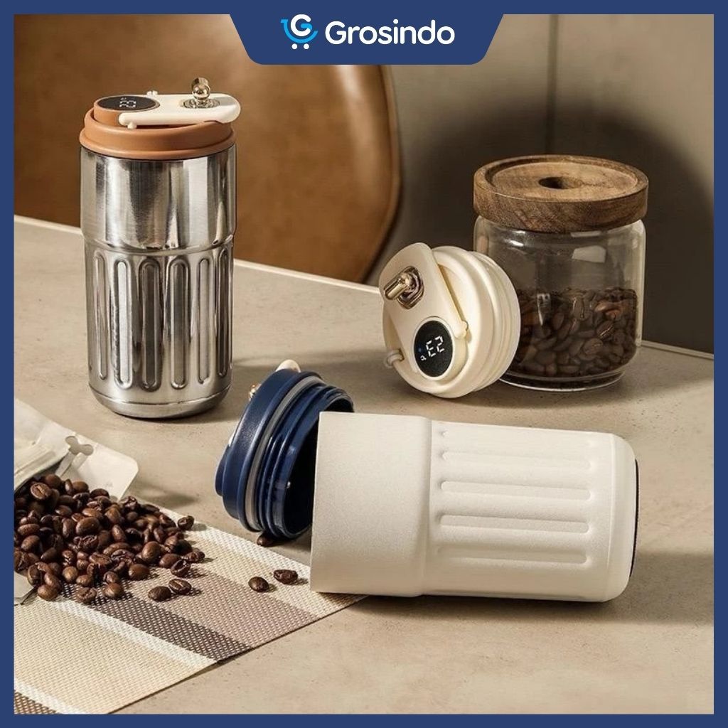 Termos Tumbler Kopi 450ml Botol Minum Mug Gelas Stainless Tahan Panas Dingin Dengan Strap & Suhu LED