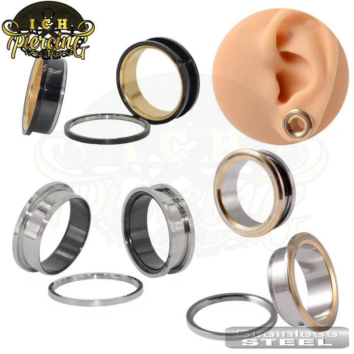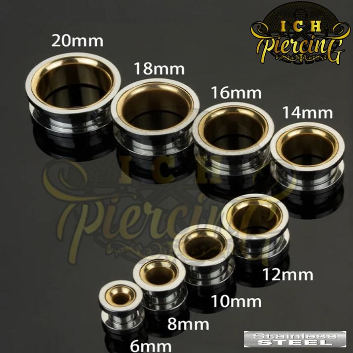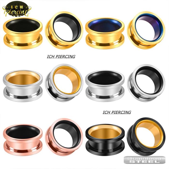 ICH 1PCS EARRINGS PIERCINGS EARPLUG STAINLES STELL TWO TONE / PIERCING TELINGA TUNNEL/ ANTING TINDIK TELINGA PLUG