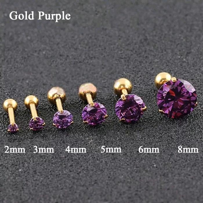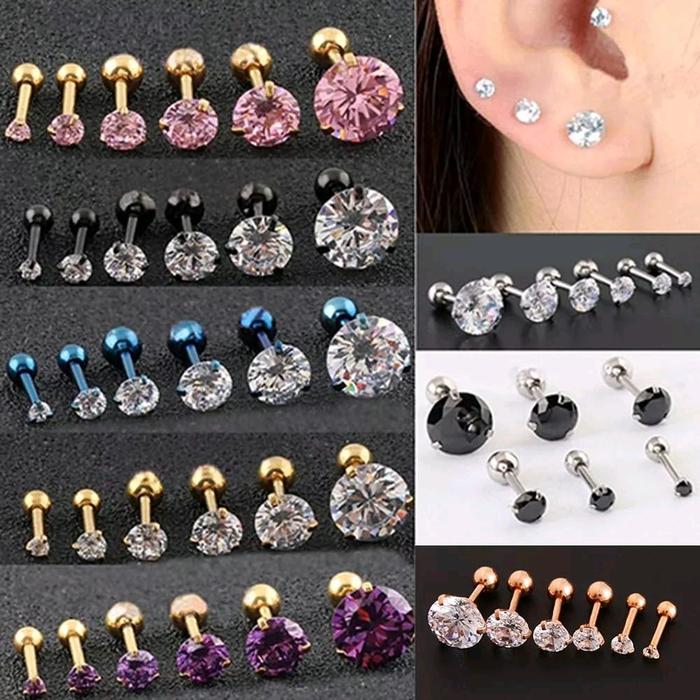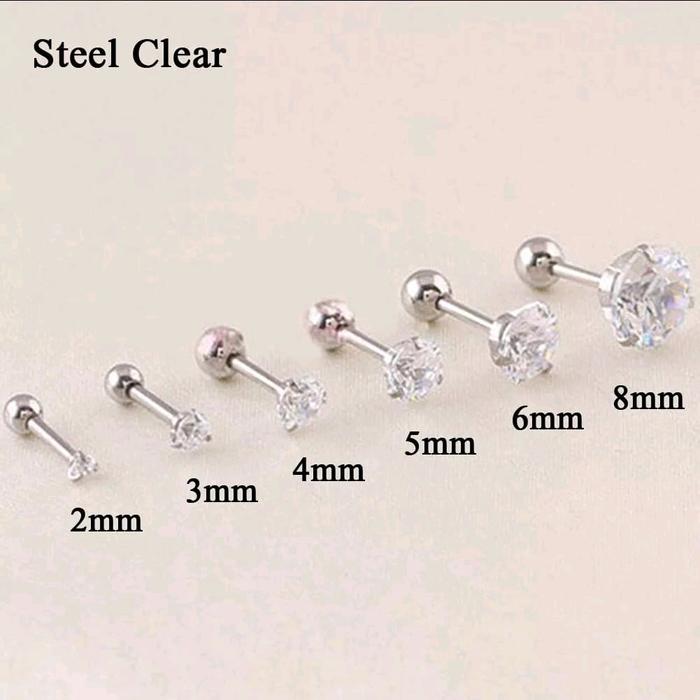 1PCS ANTING PIERCING EARRING LOBE STANDART HELIX TRAGUS STAINLESS STEEL ZIRCON 2MM - 8MM PEREMPUAN LAKI-LAKI - SILVER.C