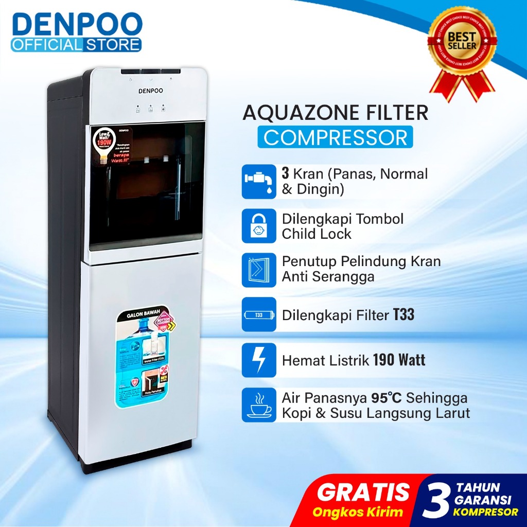 Denpoo Dispenser Galon Bawah Aquazone Filter Kompressor