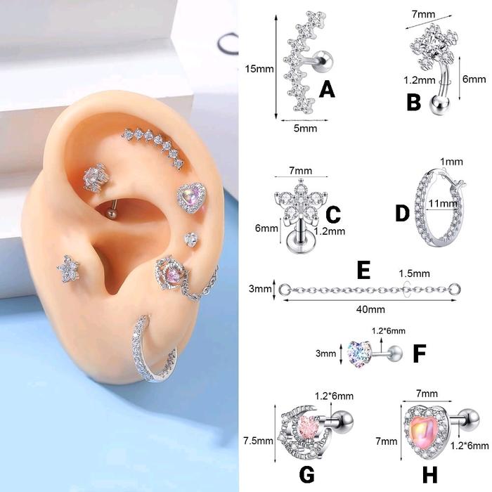 1PCS ANTING PIERCING EARLOBE HELIX TRAGUS ROOK CHAIN RING HOOP 1PIECE STAINLESS STEEL PEREMPUAN LAKI-LAKI - B
