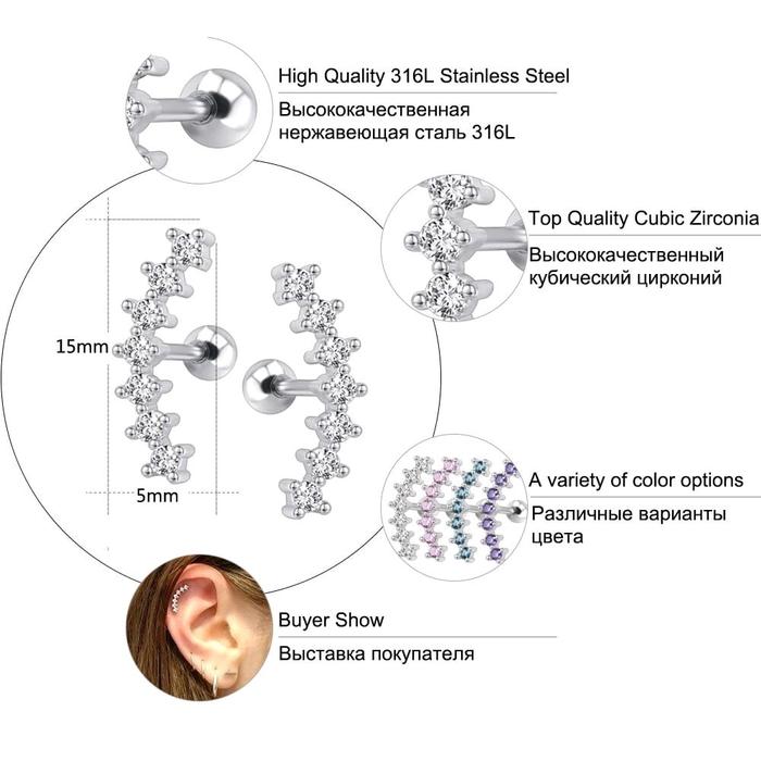 1PCS ANTING EARRING LOBE UP HELIX STAINLESS STEEL 5 COLORS STAINLESS STEEL PIERCING BODY JEWELRY - CLEAR
