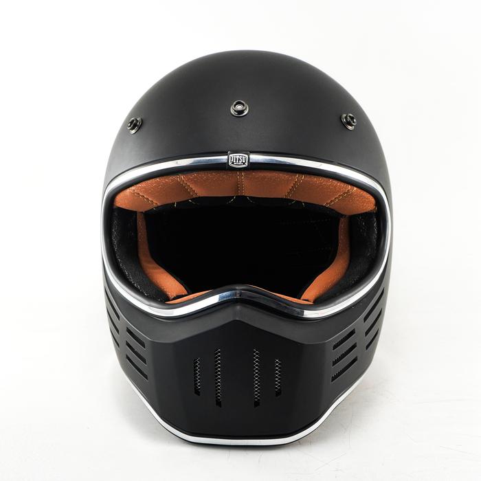 JITSU HELM CAKIL SOLID SNI TERBARU MOTORCYCLE - BLACK GLOSS- LIST SILVER, M