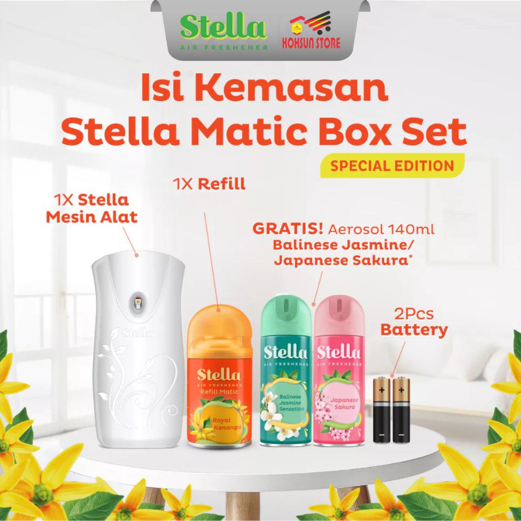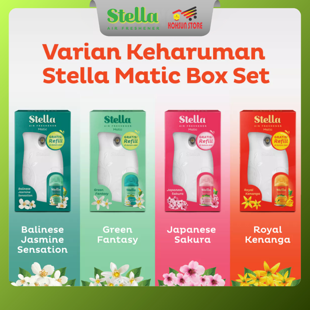 Stella Matic Box Set ALL VARIAN - Pengharum Pewangi Ruangan Otomatis - FREE Aerosol 140 ml