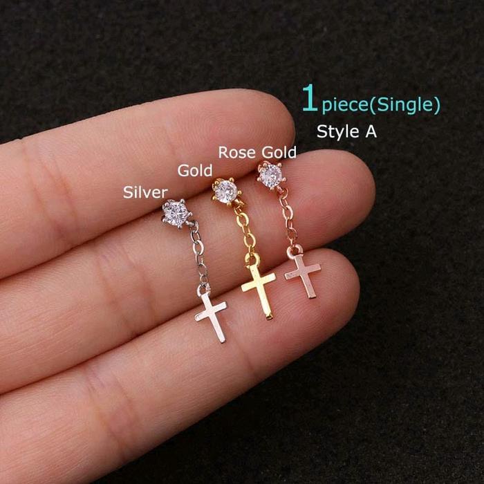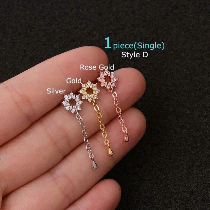 1PCS ANTING PIERCING EARRING LOBE STANDART CHAIN UPPER HELIX 1PIECE STAINLESS STEEL PEREMPUAN - STYLE.A, SILVER
