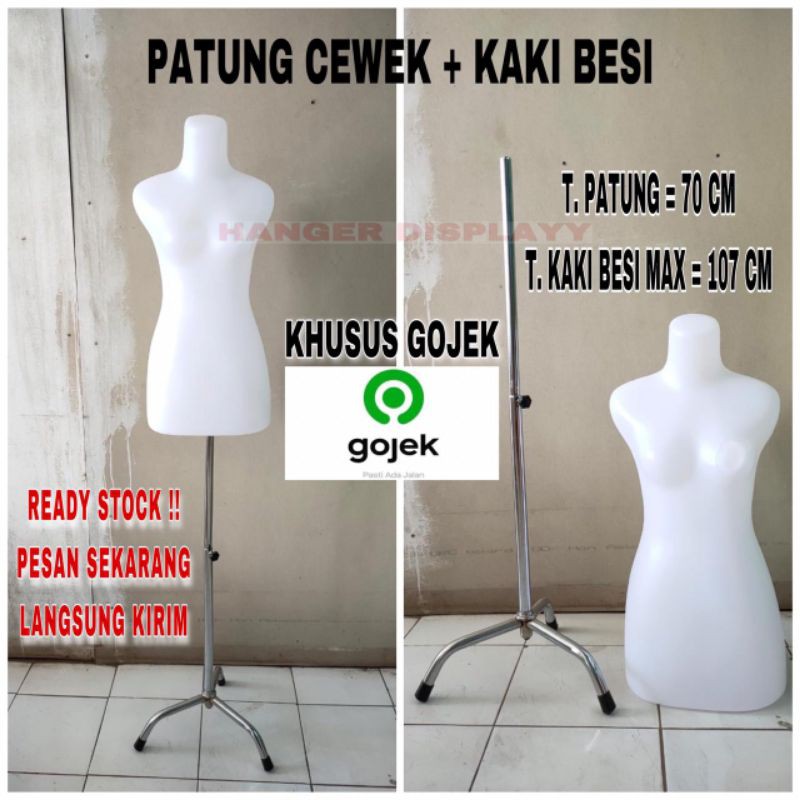 Patung / Manekin Body Cewek Dewasa Bening / Manekin Wanita Dewasa Setengah Badan + Kaki Besi (1 Set)
