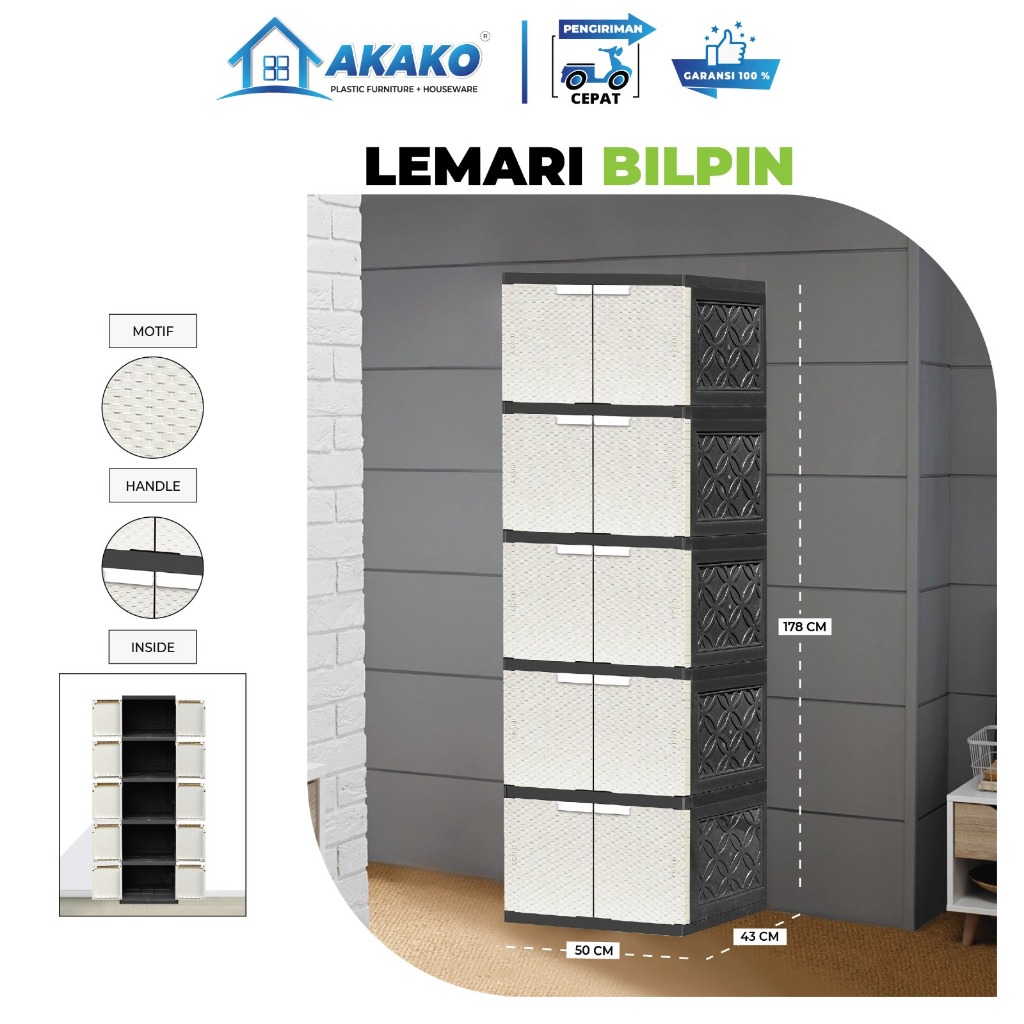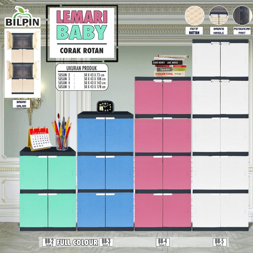 AKAKO - LEMARI PAKAIAN PLASTIK BABY BILPIN MOTIF ROTAN SUSUN 4 DAN 5