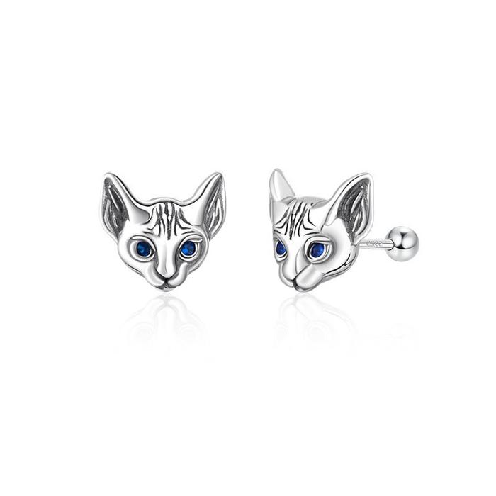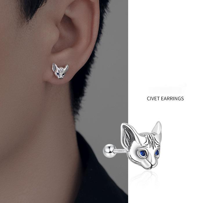 AURAVIBE-ANTING LAPIS PERAK 925 UNTUK PRIA,BENTUK KUCING MUSANG GESPER SEKRUP RETRO,BISA DIPAKAI SAAT TIDUR . - PERAK