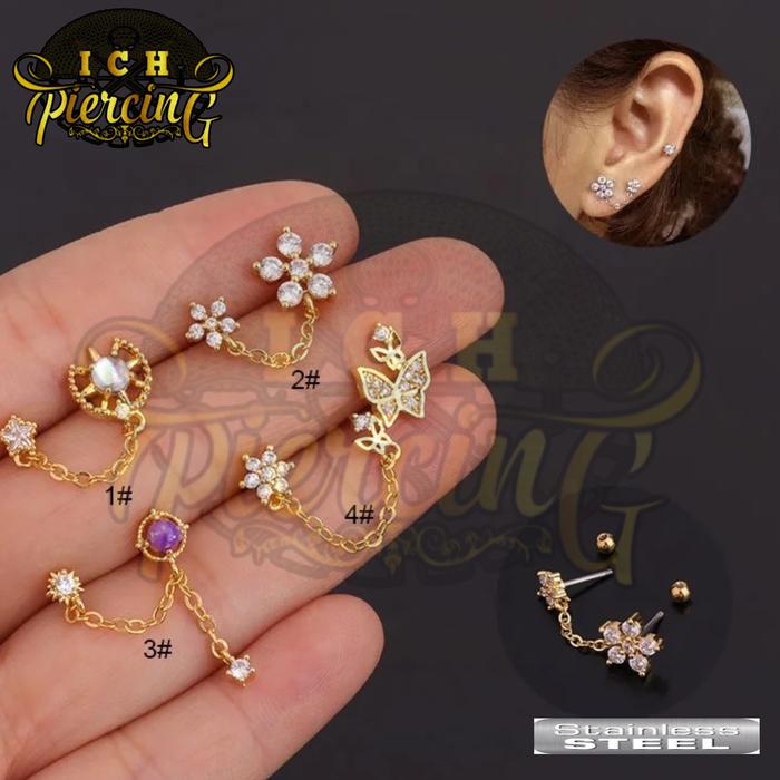 ICH 1PCS PIERCING EARCHAIN STUD STANDART HELIX UPPERLOBE STAINLESS STELL/ PIERCING EARRINGS STANDAR EARCHAIN NEW STAINLE