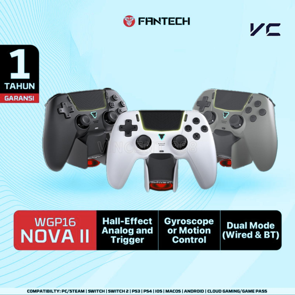 Fantech Gamepad NOVA II WGP16 Wireless Dual with Docking Hall Effect Analog & Trigger Gyro Audio 3.5mm Bluetooth BT Joystick PC Android IOS