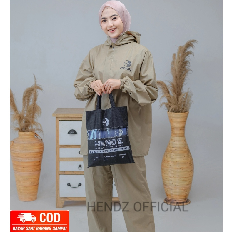 Jas Hujan HENDZ Raincoat Pria Wanita Jaket Celana Bahan PVC Karet 0,25 Tebal Lentur Anti Rembes