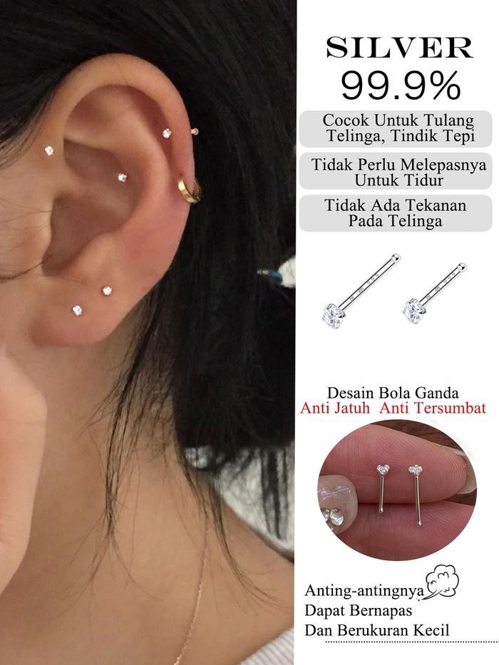 EAR PARTNER-999 SILVER KALUNG ANTING-ANTING PERAK MURNI 999 TAHUN , MODEL BARU, POPULER, MENJAGA LUBANG TELINGA, ANTING-
