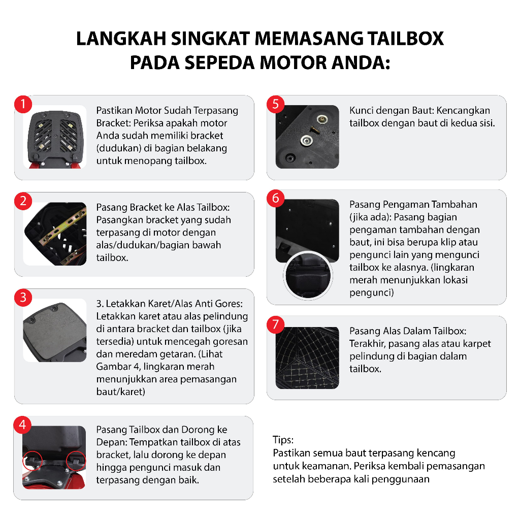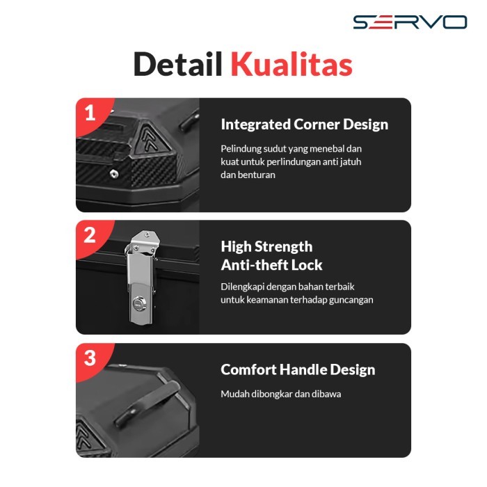 Servo Road - Motorcycle Tailbox Servo 02 VAULT 45L Box Motor Belakang Bagasi Storage Durable Box Motor Universal Kapasit