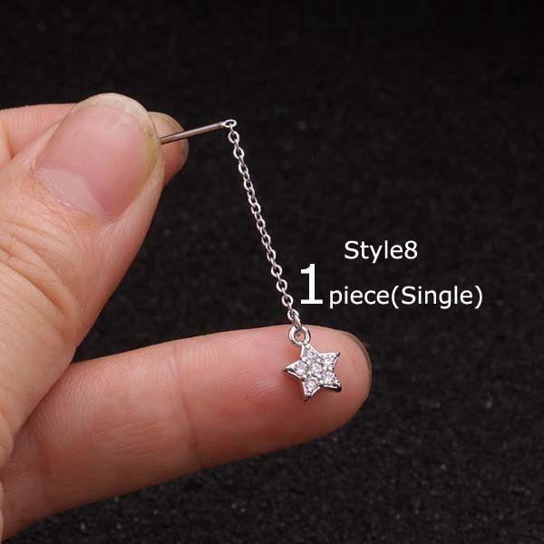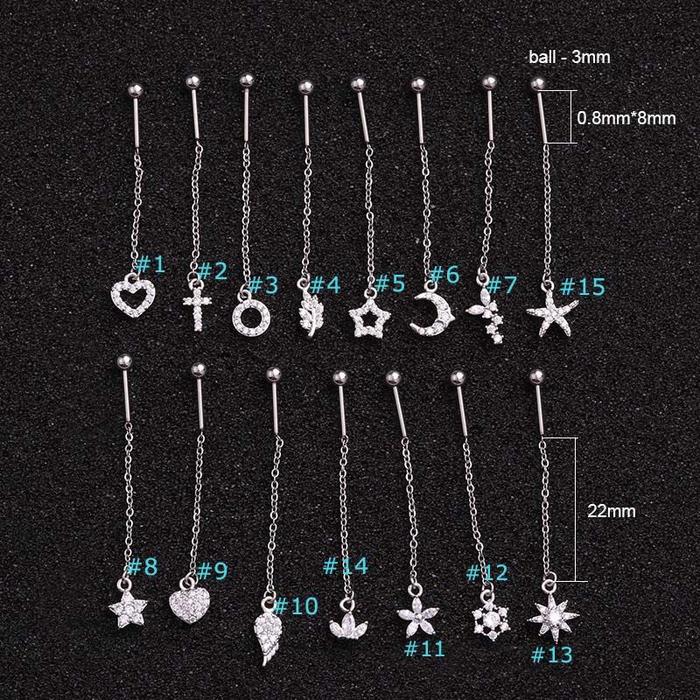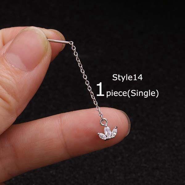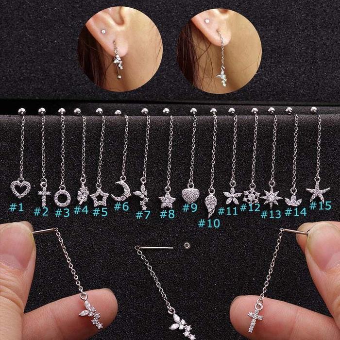 PIERCING EARRINGS TRAGUS STUD CHAIN ZIRCON STAINLESS STEEL TIPE 8 - 15 - TIPE14
