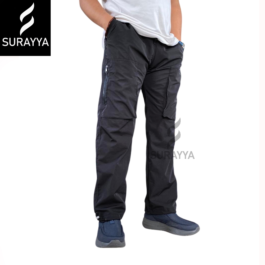 Surayya Celana Panjang Trackpants Parasut Taktikal Hijau Dan Hitam-01