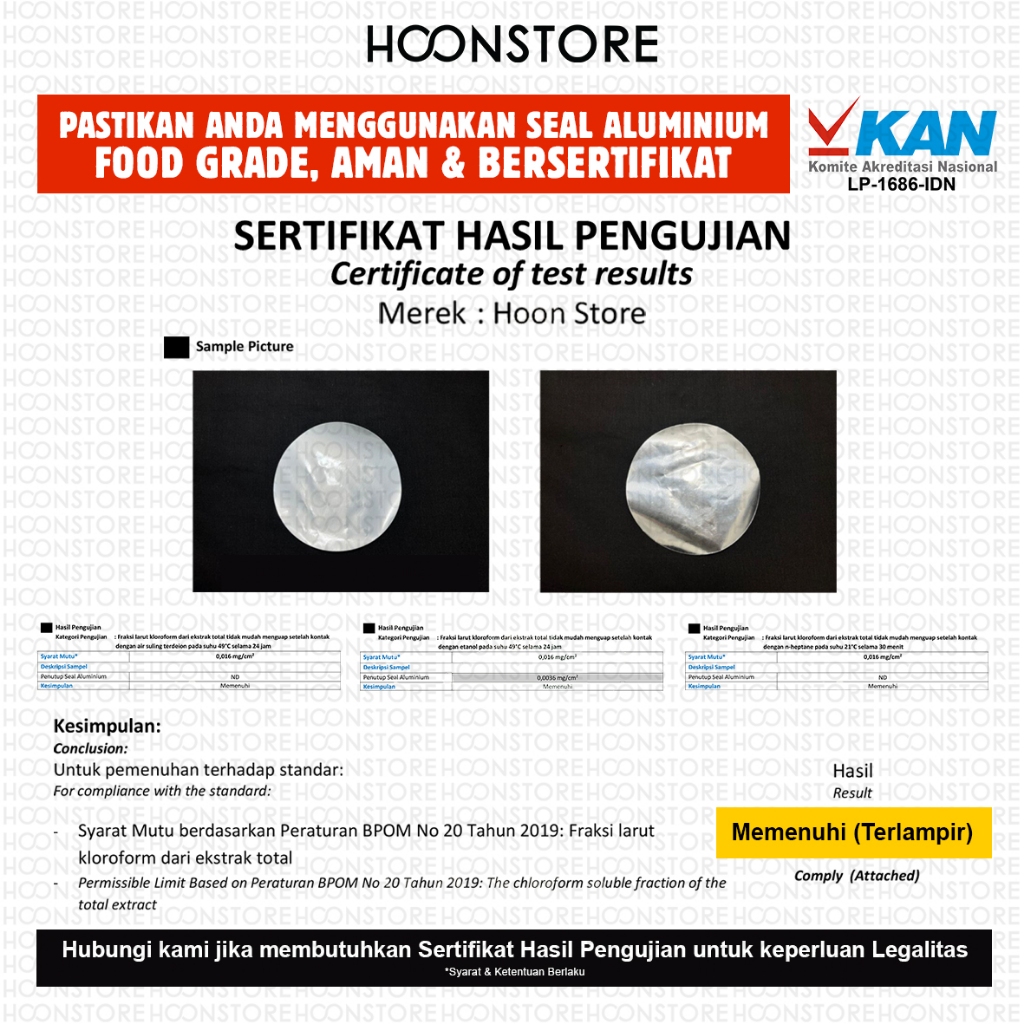 Segel Toples / Seal Aluminium Induksi Pet 8,7 cm Food Grade