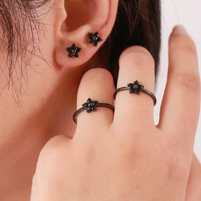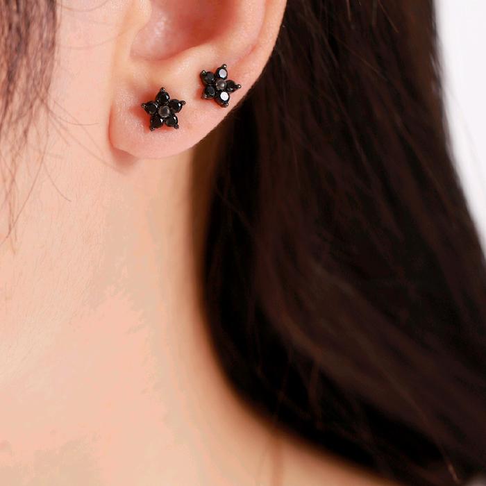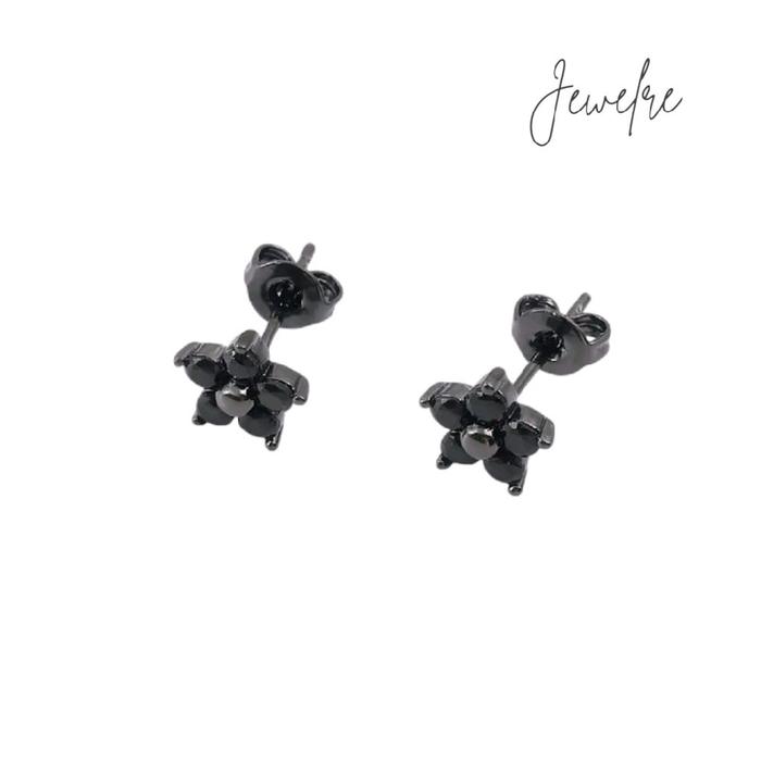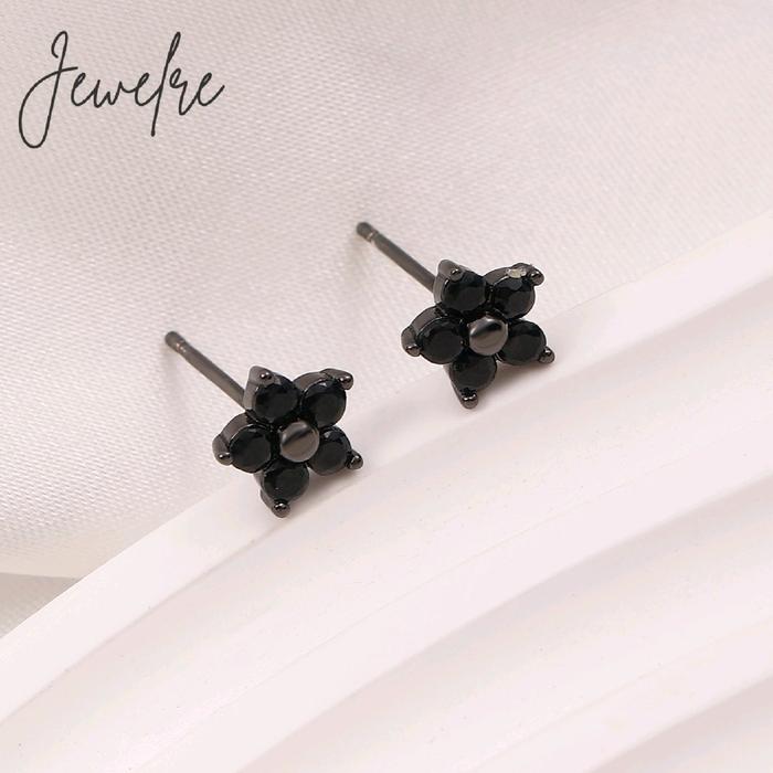 ANTING HITAM TUSUK PERMATA STUD BUNGA JEWELRE TINDIK EARRINGS AKSESORIS ELEGAN HADIAH - A. FLOWER 0.8 CM