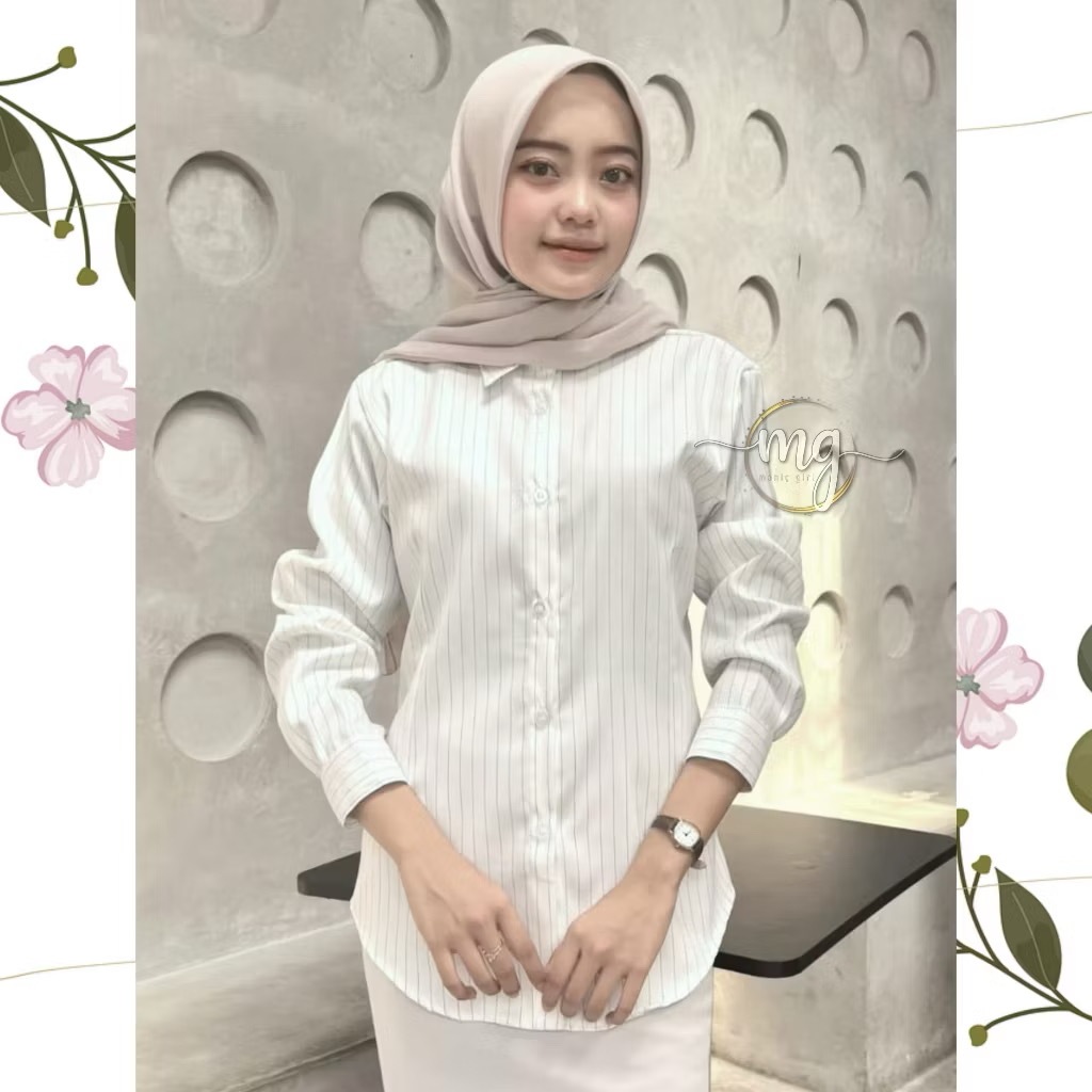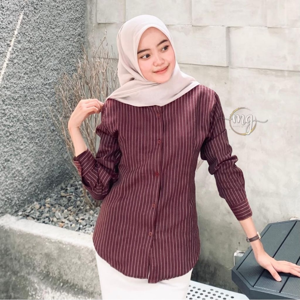 M119 - Kemeja Wispie Kemeja Garis Luna Stripe Lengan Panjang Wanita Kekinian