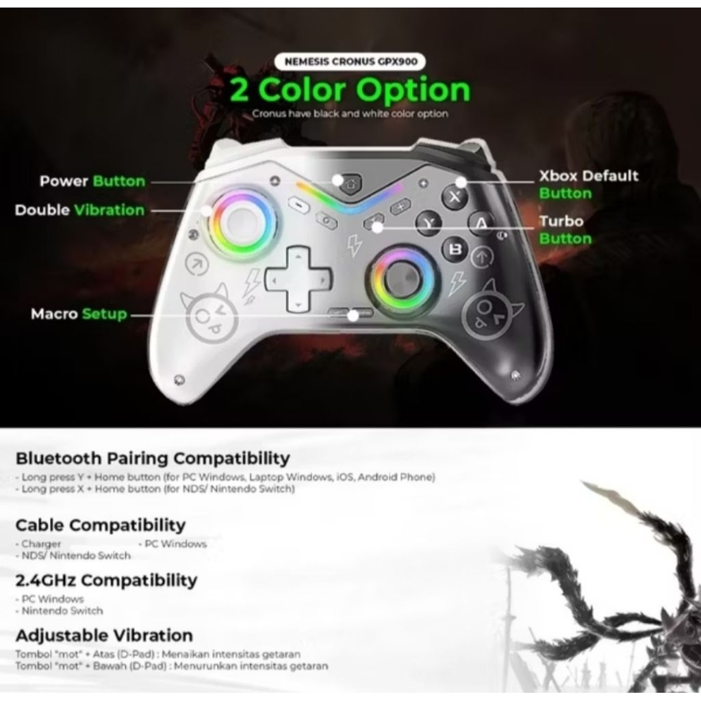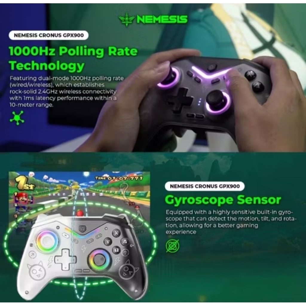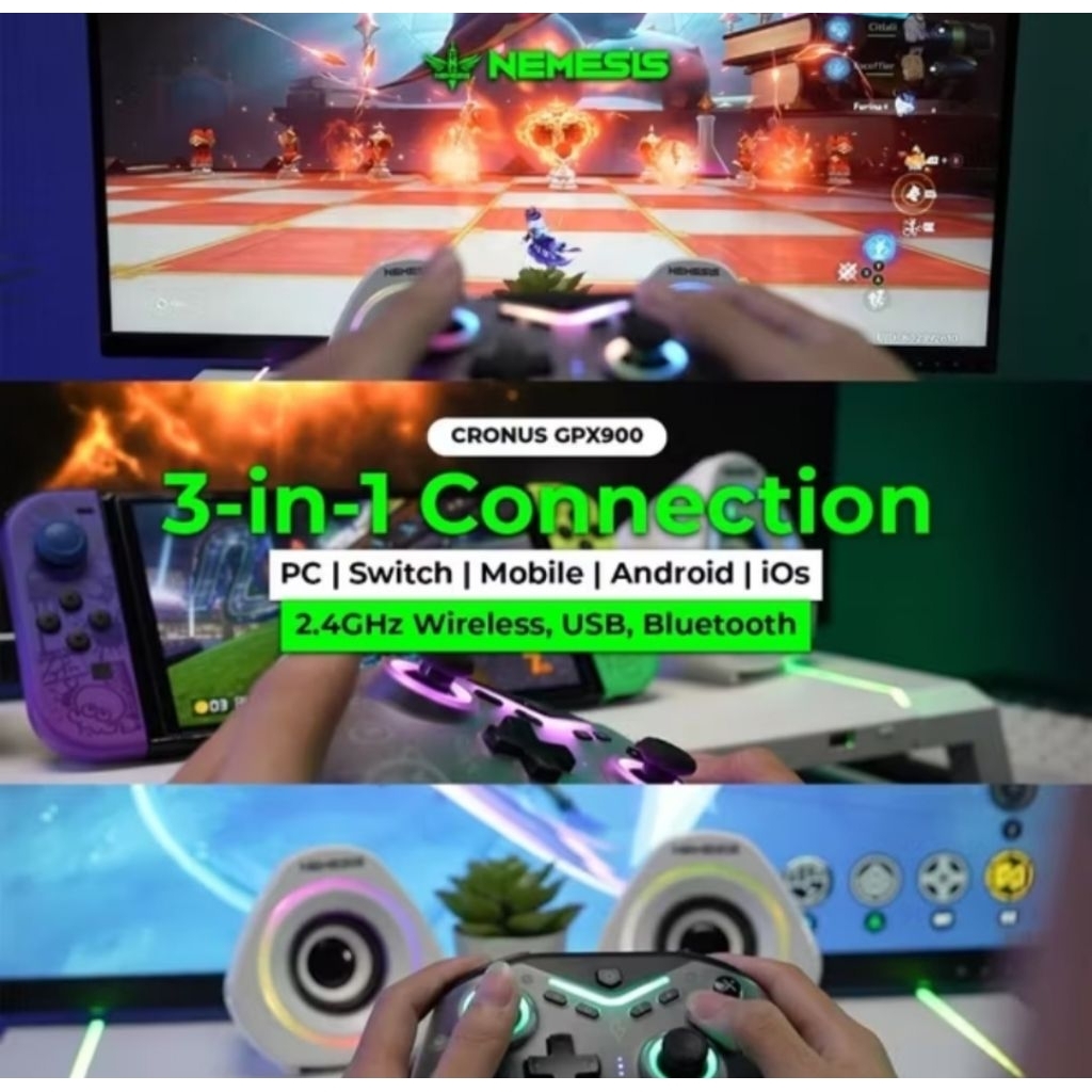 NYK GPX900 / GPX-900 CRONUS Hall Effect Wireless Triple Connection PC, Nintendo Switch, Android, IOS Gaming Controller Joystick Gamepad