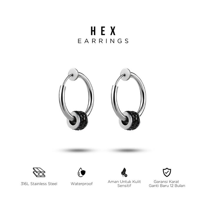 PROJECT NINETYSEVEN - HEX EARRINGS - ANTING PRIA WANITA ANTI KARAT ANTING JEPIT ANTING TUSUK (BELI 3 GRATIS 1) - BLACK,