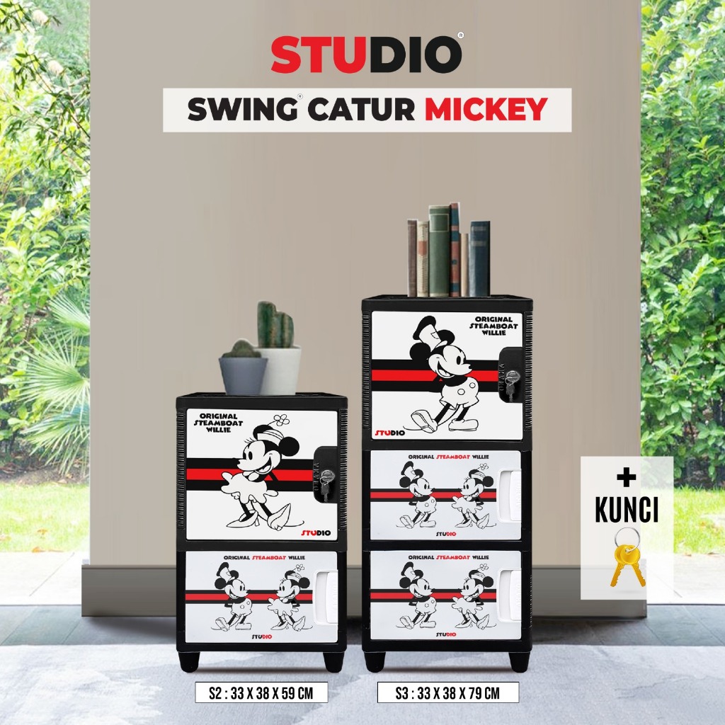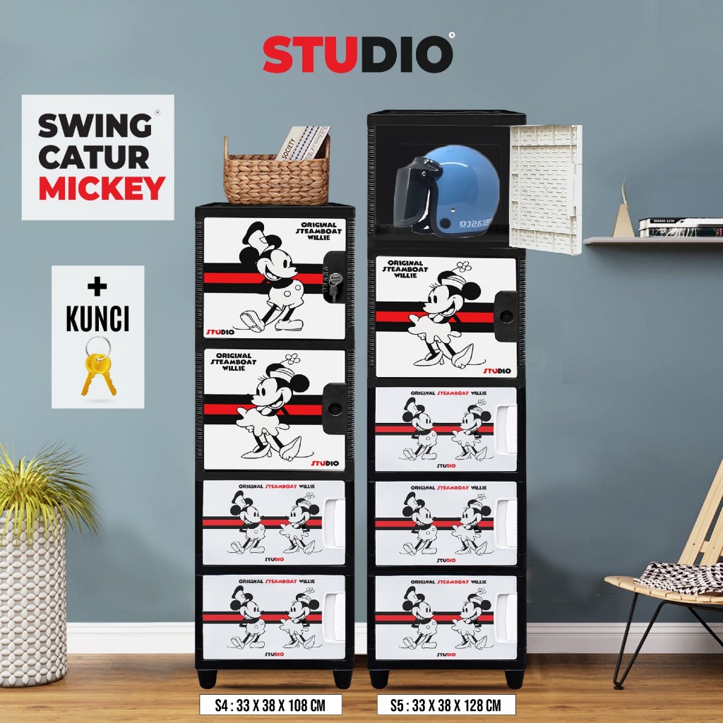 STUDIO - Lemari Pakaian Plastik Swing Catur Mix 1 Pintu Motif Mickey Mouse Susun 2, 3, 4, dan 5