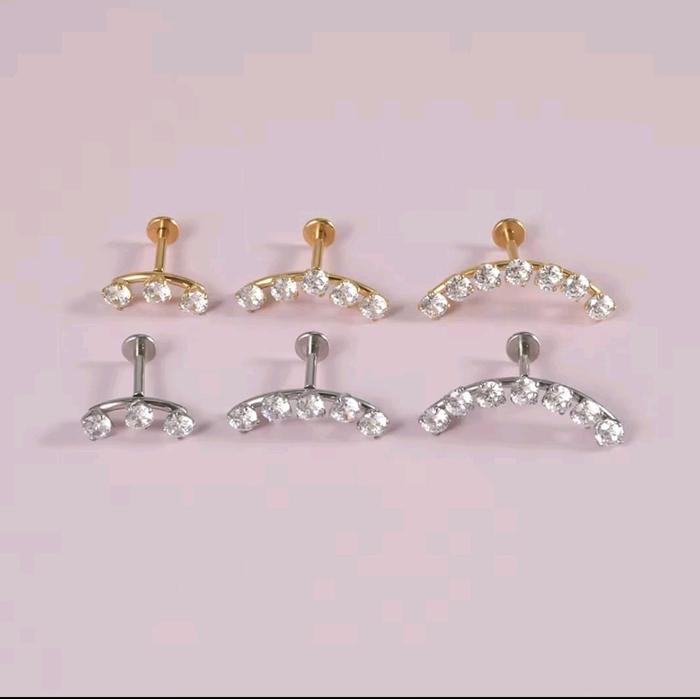 1PCS ANTING FASHION THREE/FIVE/SEVEN STAINLESS STEEL ZIRCON EAR TRAGUS CARTILAGE HELIX PIERCING INTERNAL THREAD DAITH LI