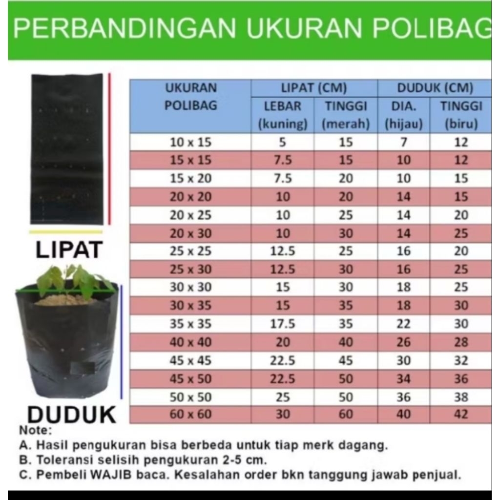 1 Lembar - Polybag 40x40 cm bibit sayuran, plastik tebal, dan awet