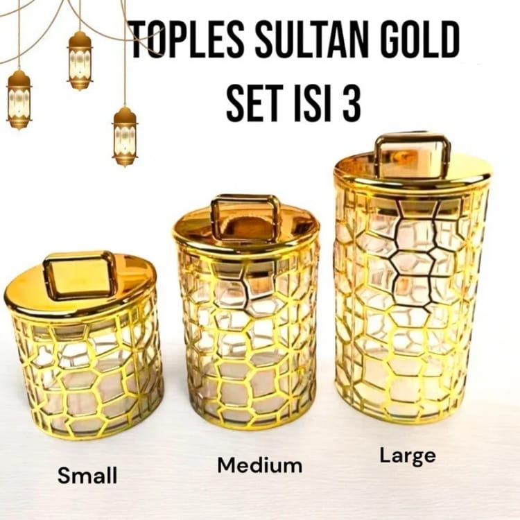 PROMO Toples Lebaran Cantik Toples Kue Kering Terlaris Toples Sultan Set Isi 3 Mewah Toples Akrilik Gold Aesthetic